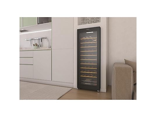 Cantinetta vino Candy DiVino progettata per conservare al meglio fino a 58 bottiglie, garantendo condizioni ideali di temperatura, umidità e stabilità. Grazie al design elegante con porta in vetro e ripiani in legno, unisce estetica e funzionalità, adattandosi perfettamente a qualsiasi ambiente domestico. Il controllo elettronico touch e la compatibilità con app hOn permettono una gestione moderna e intuitiva, mentre le basse vibrazioni assicurano la perfetta conservazione del vino nel tempo.