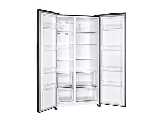 Frigorifero americano a libera installazione con capacità totale di 532 L progettato per offrire grande spazio di conservazione e gestione efficiente degli alimenti. Il sistema No Frost per frigorifero e congelatore evita la formazione di ghiaccio mentre il compressore inverter garantisce prestazioni affidabili. Dotato di display esterno illuminazione LED e funzioni di raffreddamento e congelamento rapido.