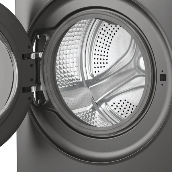 La connettività Wi-Fi e Bluetooth, insieme all’app hOn, consente il controllo remoto avanzato, l’accesso a programmi extra e il monitoraggio costante delle prestazioni. Il design elegante in Grigio Notte Polare, il display LCD e il cestello Soft Drum rendono questa lavatrice una soluzione premium per chi cerca tecnologia, comfort e stile.
