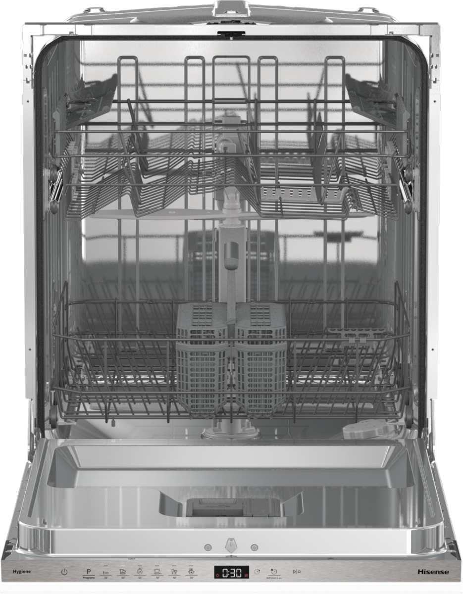 La lavastoviglie da incasso Hi4 HV642E90 da 60 cm offre una capacità di 13 coperti e installazione a scomparsa totale. Dispone di 2 cestelli con altezza regolabile nel cesto superiore, programmi di lavaggio completi tra cui Eco, intensivo e rapido, e funzione Hygiene. Il consumo per ciclo Eco è di 11 litri d’acqua e 0,92 kWh. Il controllo avviene tramite pannello touch con partenza ritardata fino a 24 ore e segnale di fine lavaggio acustico e luminoso.